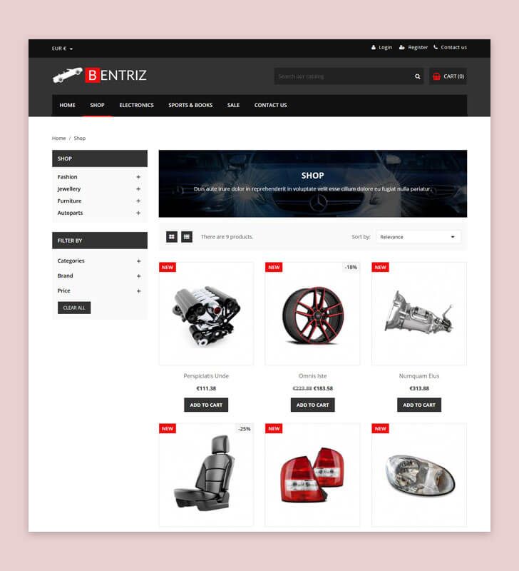 Bentriz PRO is a Auto Parts Prestashop responsive theme that specially designed for auto store, auto spare parts, cars, bikes and tools store. Bentriz Prestashop responsive theme is looking good with it’s colors combination.