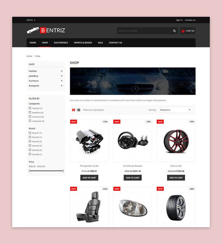 Bentriz is a free Auto Parts Prestashop responsive theme that specially designed for auto store, auto spare parts, cars, bikes and tools store. Bentriz Prestashop responsive theme is looking good with it’s colors combination.