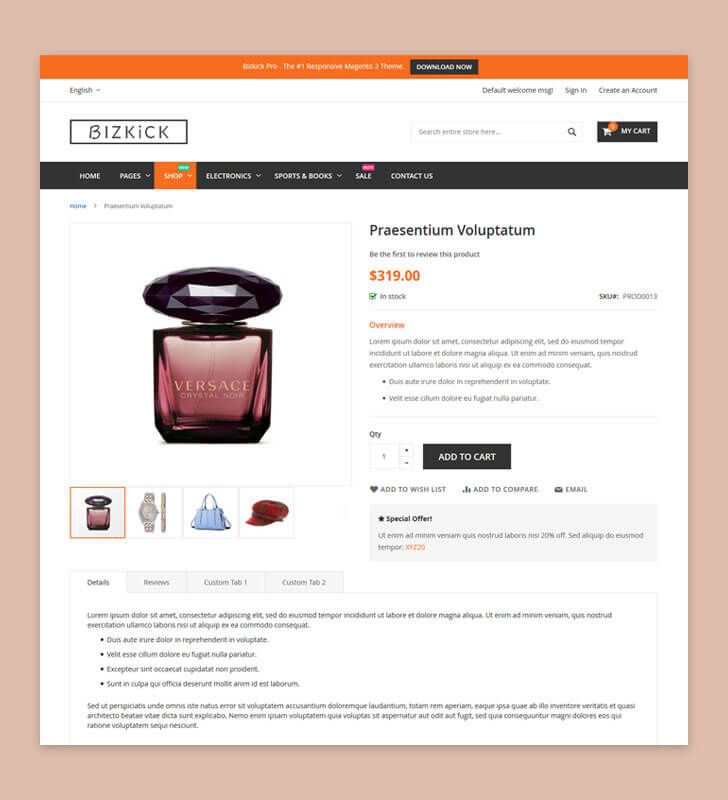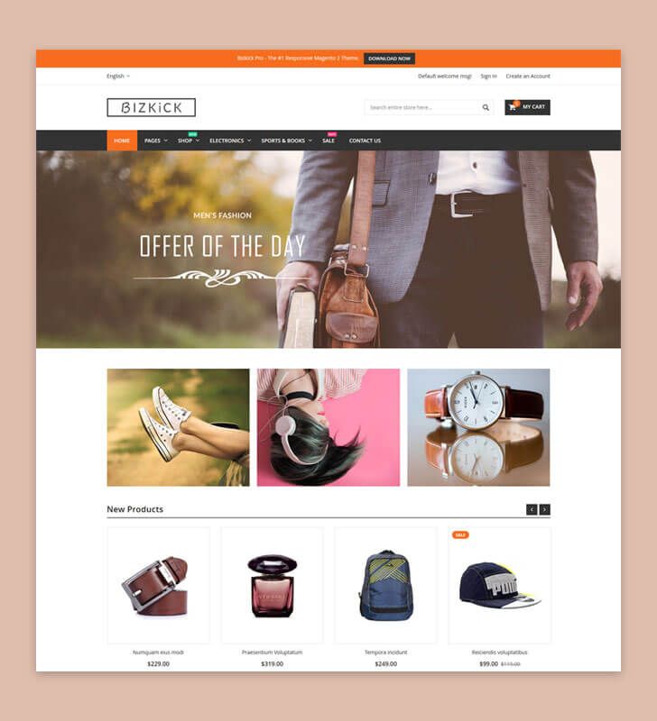 Bizkick Pro Fashion Magento 2 Theme is a unique and feature-rich theme optimized for online fashion store. This Fashion Magento 2 Theme is a best fit to all kinds of Fashion & Apparel Store. Every single element of this Fashion Magento 2 Theme is finely tuned and refined, reflecting a sense of elegance and beauty.