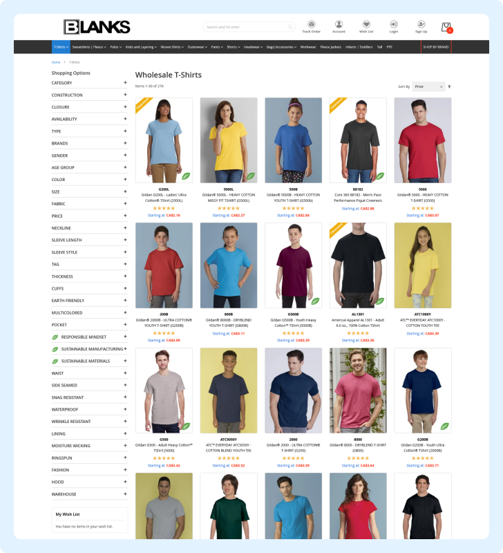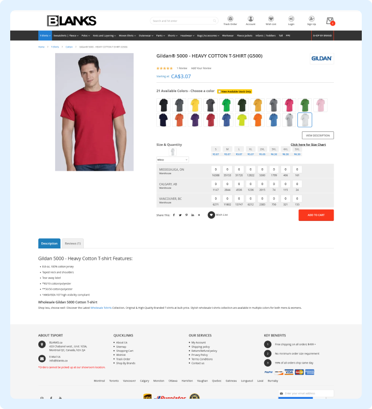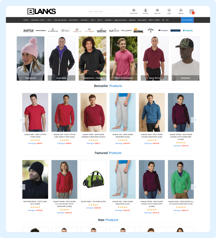 Blanks is a leading wholesale dealer of promotional and corporate activewear clothing and accessories for the imprintable apparel market. With distribution centres strategically located in Montreal, Blanks offers a complete choice of top quality products at the best prices in Canada.