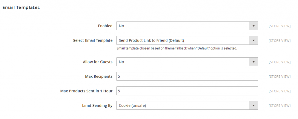 3) In this page, expand Catalog section in the panel on the left and choose Email to a Friend.