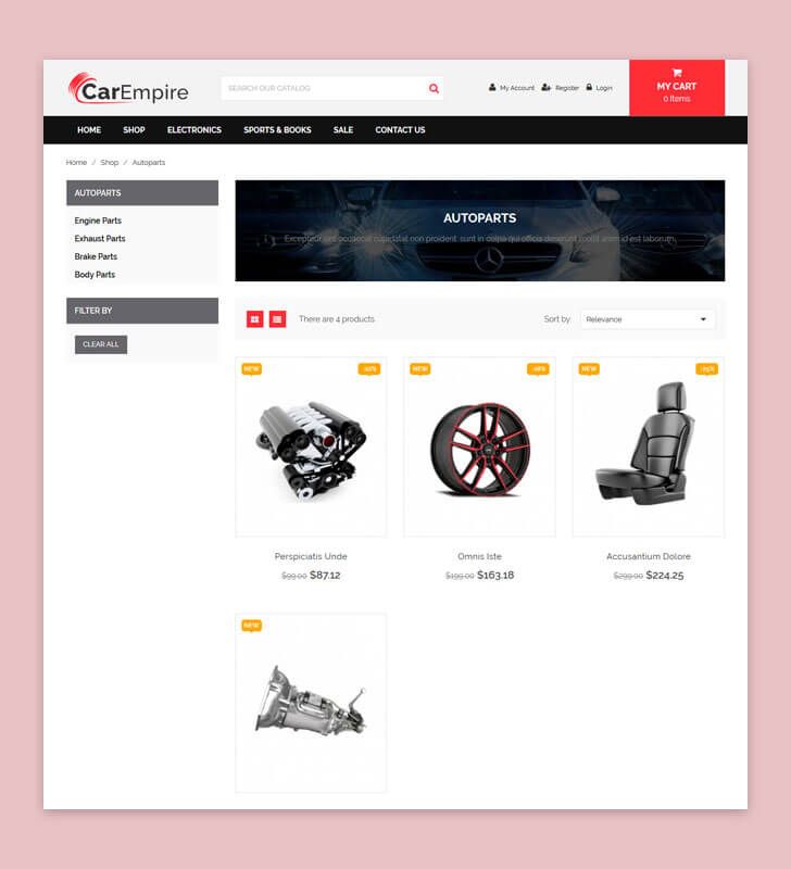 CarEmpire is a theme for fastest growing Autoparts stores. Professionally designed for auto store, auto spare parts, cars & bikes and tools store. Great color combination engages your customer with the brand. Responsive design makes your store ultra-powerful.