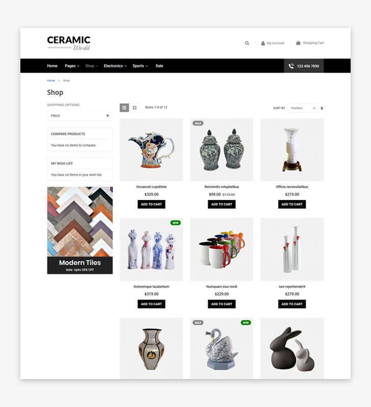 Ceramic world is clean, simple and mobile first Magento 2 theme. Specially created for Ceramic and Sanitary ware, Plumbing tools, Hardware tools, Home decor, Sanitary equipment, etc. Easy to work with and adapts perfectly to whatever you are selling. Build your brand with powerful features of Ceramic world.