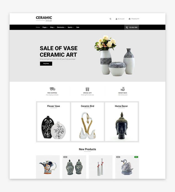 Make your website becomes more professional with clean and classy layouts. Responsive design makes the perfect look on any device. Grab your customer attention with New and Sale product labels. Sticky Add to Cart provide hassle free shopping experience. A professionally design Mega menu with labels let you navigate customer easily. Easy to convey your product features with Product Tab. Ceramic world helps you to grow your online business.
