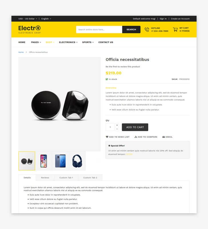 See Electro - Electronics StoreMagento 2 Theme in Action. We offer an online meeting at your convenience for you in case: