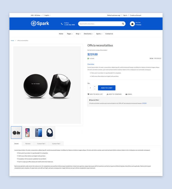 The clean and classy layout makes your store more professional. Grab your customer attention with unique block design. Easy to convey your product features with Product Tab. Responsive design makes the perfect look on any device. Espark is a perfect fit for Digital Store.