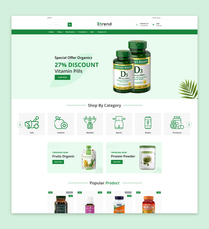Etrend Magento 2 Theme offer everything you need to build, grow & scale your ecommerce business. Best Converting Magento 2 Theme, Guaranteed. This premium Magento 2 Theme is backed by powerful conversation boosting features that help you to drive more sales!