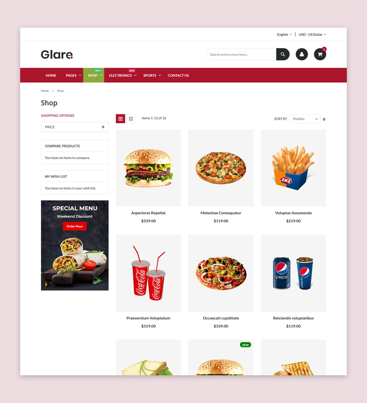 Glare Magento 2 Theme is a unique and feature-rich theme optimized for restaurant & online food store. This Magento 2 Theme best fit to all kinds of food business like a restaurant, bakery, pizza, organic food, etc. Every single element of this Magento 2 Theme is finely tuned and refined, reflecting a sense of elegance and beauty.