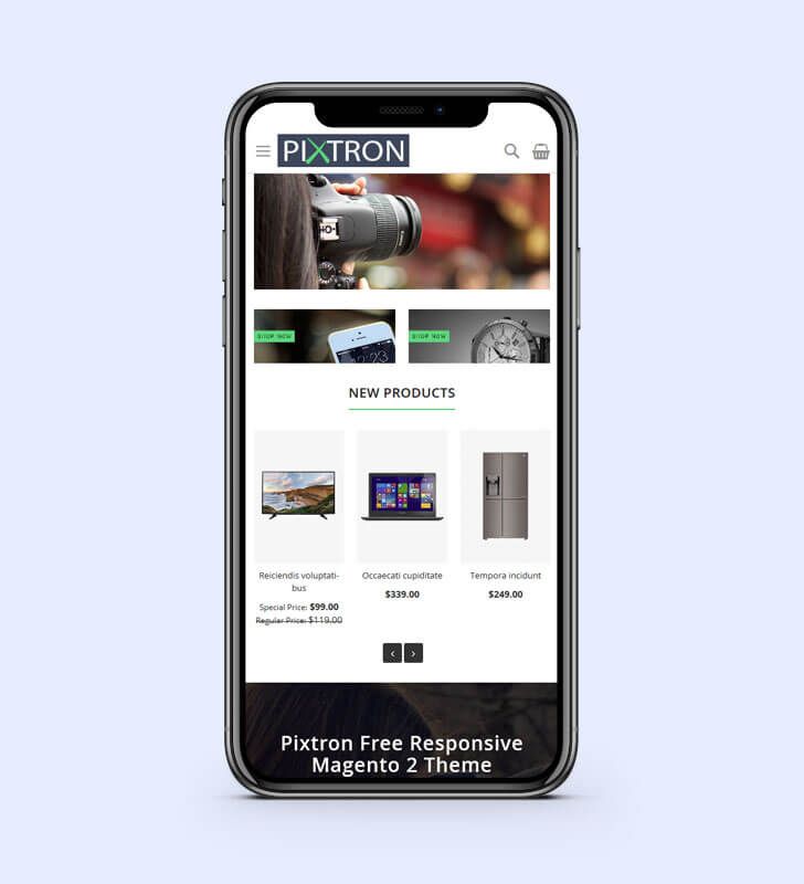 Pixtron is a Professionally design Free Electronic Magento 2 responsive theme that specially designed for Electronic store, Digital store, Mobile store and TV store. The theme is professionally designed and hand-coded according to current Magento standards, which help your ranking in search engines like Google, Yahoo etc.