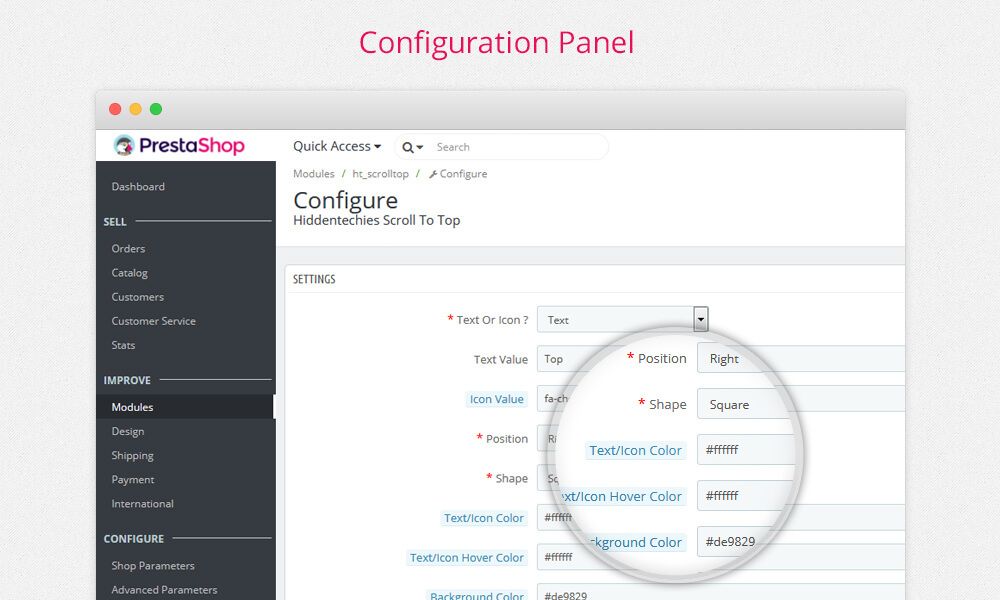 Scroll to Top prestashop module allows the visitor to easily scroll back to the top of the page, with fully customizable options and image.