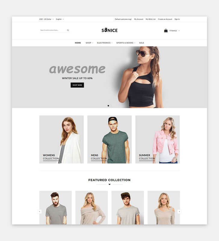 SoNice Fashion Magento 2 Theme is an elegant theme with extremely customizable admin settings. This Fashion Magento 2 Theme is a best fit to all kinds of Fashion & Apparel Store. Every single element of this Fashion Magento 2 Theme is finely tuned and refined, reflecting a sense of elegance and beauty.