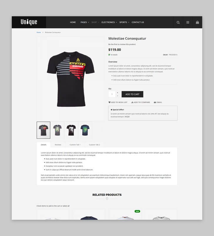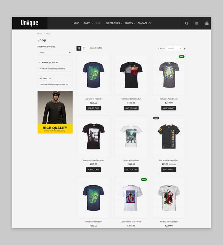 Unique is fully responsive Magento 2 Theme dedicated for all stores selling clothes, furniture, watches, Jewelry, food ,etc. It has many attractive animations, modern and attractive design. Do you sell clothing for clothes, furniture, watches, Jewelry, food or accessories like bags, hats, belts, etc. ? These designs are made for you.