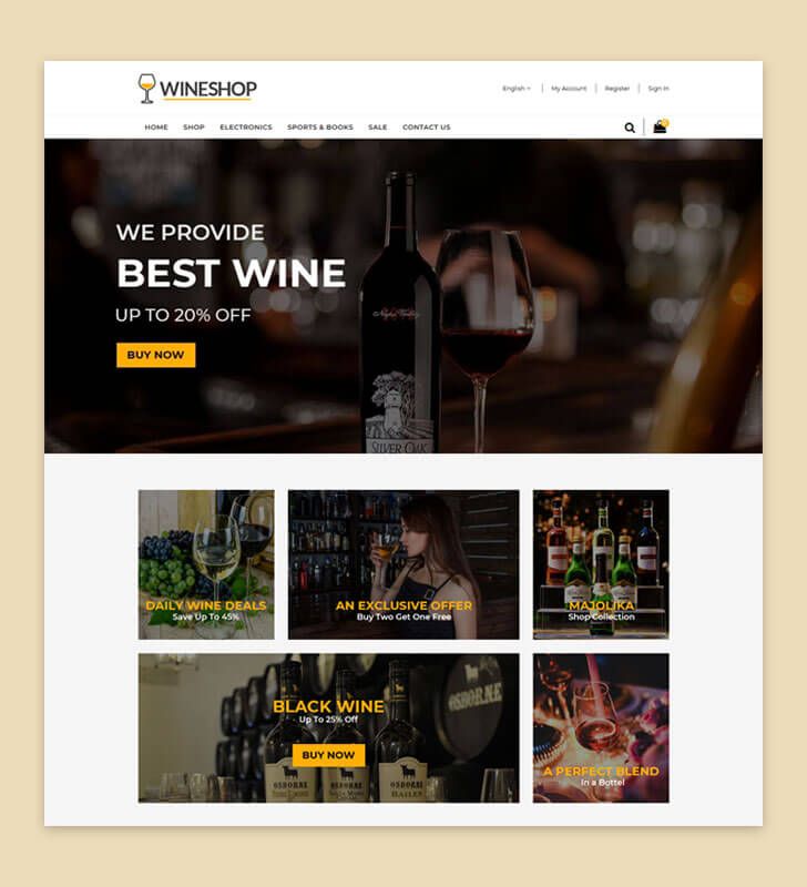 WineShop is a theme for fastest growing Wine stores. Professionally designed for for wine, drinks, food and grocery store. Great color combination engages your customer with the brand. Responsive design makes your store ultra-powerful.